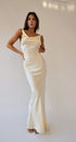 Persis Cowls Sırtı Açık Saten Uzun Elbise