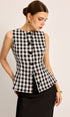 Ekose Düğmeli Bağlamalı Üst