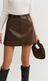 Düz Suni Deri Kemerli Etek