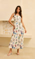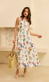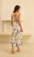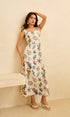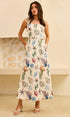 Cepli Kare Yaka Deniz Desenli Uzun Elbise