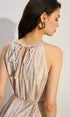 Cepli Bağcıklı Uzun Elbise