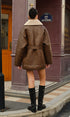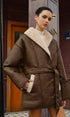 Cepli Kemerli Suni Deri Polar Ceket