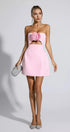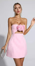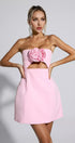 Haşhaş Pembesi Çiçekli Mini Elbise