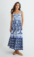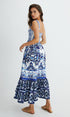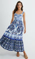 Baskılı Askılı Pileli Uzun Elbise