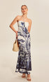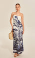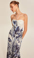 Baskılı Bağlamalı Halter Askısız Elbise