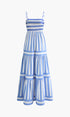 Baskılı Sırtı Açık Cepli Uzun Elbise