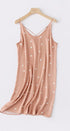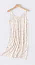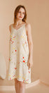 Bu yazlık saten astarlı elbise, zarafeti konforla birleştiren taze bir ortanca çiçek tasarımına sahiptir. Orta uzunlukta kesimi ve hafif kumaşı, evde dinlenirken serin ve rahat bir uyum sağlar.