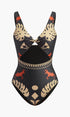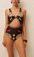 Baskılı Kesik Detaylı Tek Parça Mayo