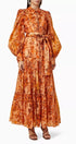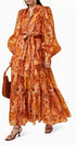 Queena Baskılı Balon Kol Maxi Elbise