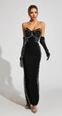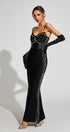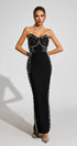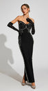 Quinara Siyah Düşük Omuz Bandajlı Uzun Elbise