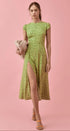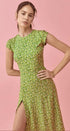 Rachel baskılı yuvarlak yaka yırtmaçlı midi yazlık elbise