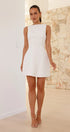 Polyesterden üretilen Sophia Mini Elbise, daha fazla konfor için tamamen astarlıdır ve kusursuz bir görünüm için görünmez bir arka fermuara sahiptir. Hem resmi hem de yarı resmi durumlar için ideal olan bu elbise, sofistike ve çağdaş şıklığı zahmetsizce birleştiriyor.