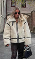 Cozy Shearling Aviator Ceketimiz ile bu kış sıcak ve şık kalın. Pelüş suni kürk ve şık kontrast detaylara sahip bu ceket, hem konfor hem de sofistike bir görünüm sunar. Soğuk günlerde kat kat giymek için mükemmel olan bu ceket, gardırobunuza çok yönlü bir ektir.