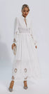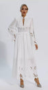 Remy Beyaz Uzun Kollu Dantel Maxi Elbise