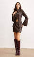 Retro Suni Deri Cepli Etek