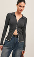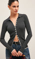 Ribanalı Önden Düğmeli Kısa Hırka