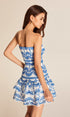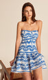 Dalgalı Straplez Kat Kat Etek Uçlu ve Dilimli Detaylı Elbise