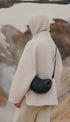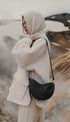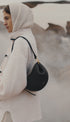 Ahşap bir kalıp üzerinde deriyi şekillendirilerek elde edilen “Rivah” çantasının yuvarlaklığı, bükülmüş metal tokaya karışan katları tarafından şekillendirilir. Çantanın kontrast oluşturan gövdesi ve omuz askısı, düz ve dokulu derilerden oluşur.