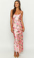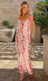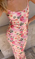 Romantik Çiçekli Askılı Uzun Elbise