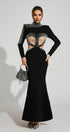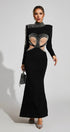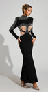 Rosalinde Siyah Dekolteli Fileli Bandaj Uzun Elbise