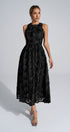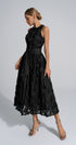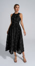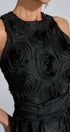 Biberiye Siyah 3D Çiçekli Uzun Elbise