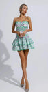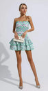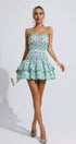 Biberiye Yeşili Fırfırlı Mini Elbise