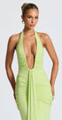 Rosetta, vücuda tam oturan kesimi, derin V yakası ve dramatik drape detaylarıyla göz alıcı bir silüet yaratır. Esnek kumaşı sayesinde hem rahat hem iddialı. Düğün davetleri, özel geceler ya da kırmızı halı görünümleri için ideal bir seçim.