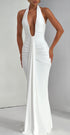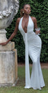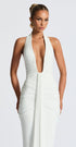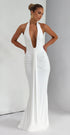 Rosetta, çarpıcı derin V yaka kesimi ve ön kısmındaki drape detaylarıyla dikkat çeken, vücuda tam oturan bir maxi elbise. Minimalist görünümünü, dramatik bir duruşla buluşturan bu elbise; mezuniyet, nişan ya da özel geceler için ideal bir tercih.