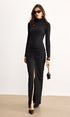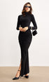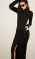 Buruşuk Bölünmüş Jersey Uzun Elbise