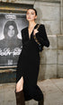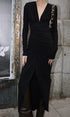 Büzgü Detaylı Yırtmaçlı Triko Elbise