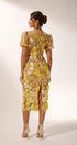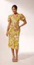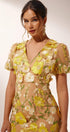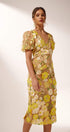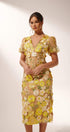 Sally V yakalı çiçekli midi elbise