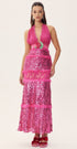 Sara Boyundan Bağlamalı Payet İşlemeli Maxi Elbise