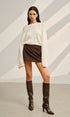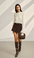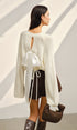 Saten Fiyonk Detaylı Volan Kol Kısa Triko Kazak