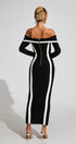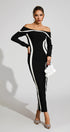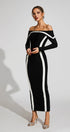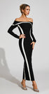 Selestia Siyah Düşük Omuz Bandajlı Uzun Elbise