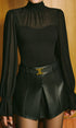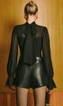 Yarı Transparan Şifon Pileli Bağcıklı Yaka Panelli Bluz