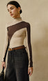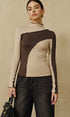 Yarı Transparan Renk Bloklu Dikişli Jersey Üst