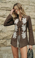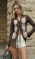 Yarı Transparan Nakışlı Önden Bağlamalı Gömlek