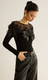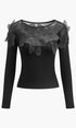 Yarı Şeffaf Çiçek Desenli Dar Bluz