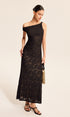 Yarı Şeffaf Dantel Tek Omuzlu Uzun Elbise