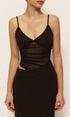 Yarı Şeffaf Derin V Yaka Asimetrik Büzgülü Elbise
