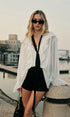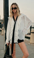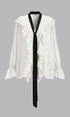 Zıt Renk Bağlamalı Yarı Şeffaf Fırfır Detaylı Bluz