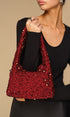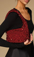 Pul İşlemeli Büzgülü Kadife Koltukaltı Çantası