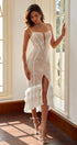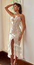 Seraphina Beyaz Dantel Fırfırlı Midi Elbise