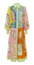 Ege kasabalarının renkli sokaklarından, eski evlerin işlemeli pencerelerinden ilham alan bu uzun elbise; her adımda bir hikâye anlatır. Renk blokları, illüstratif mimari desenleri ve romantik etek hareketiyle yazın en özgün parçalarından biri olmaya aday.