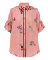 Yılanlı sürahiler, stilize bitkiler ve yıldız detaylarıyla bezenmiş Serpentina Gömlek, oversize kalıbı ve pembe zemin üzerindeki illüstrasyonlarla cesur ama romantik bir stil sunar. Hem tek başına elbise gibi kullanılabilir, hem de etek veya şortlarla kombinlenebilir.