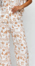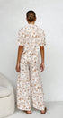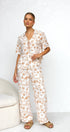 Bu iki parçalı set, rahat ama şık bir görünüm için mükemmel, yumuşak yuvarlak kenarlı, rahat kesim yakalı düğmeli üst ve uyumlu elastik belli pantolondan oluşuyor. Beyaz zemin üzerindeki bej baskı, zarafet katıyor ve bu da onu gündelik geziler, tatil kıyafetleri veya evde uzanmak için ideal kılıyor. Şık, yazlık bir kıyafet için sandaletler ve güneş şapkasıyla eşleştirin veya daha parlak bir görünüm için topuklu ayakkabılar ve aksesuarlarla süsleyin.