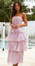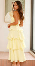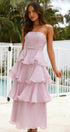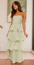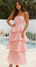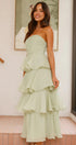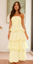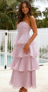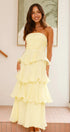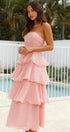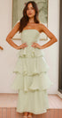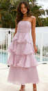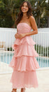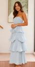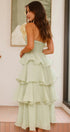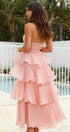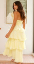 • Tasarım: Straplez, sırtı açık, katmanlı A kesim etekli