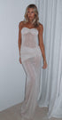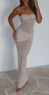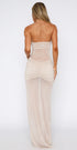 Zarif Işıltı Straplez Simli Maxi Elbise - Şampanya