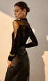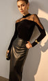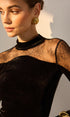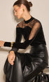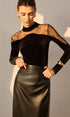 Şeffaf Dantel Panelli Kadife Dar Kesim Bluz