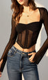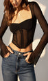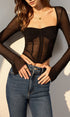 Şeffaf File Uzun Kollu Dar Kesim Bluz